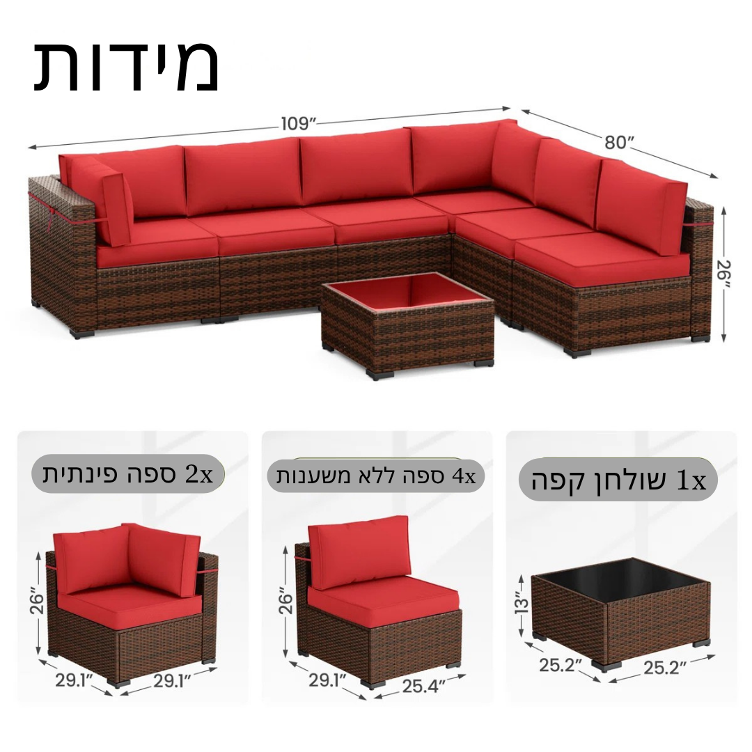 כולל: ספות, שולחן, כריות, כלי הרכבה, מדריך שימוש