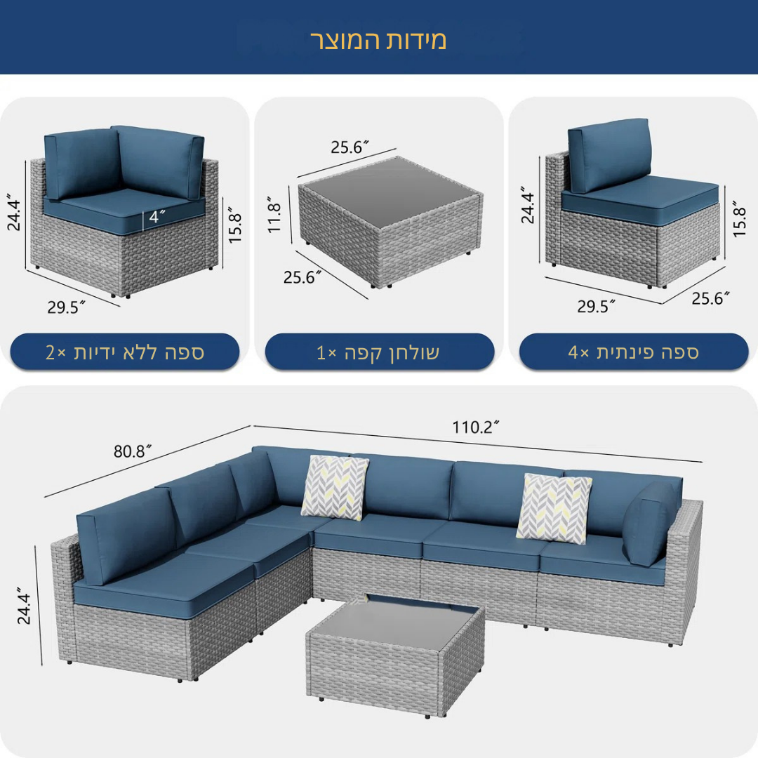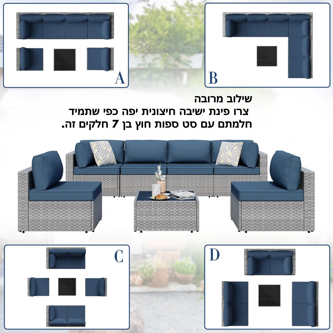 💜 סט טרקלין ראטן מודולרי בן 7 חלקים