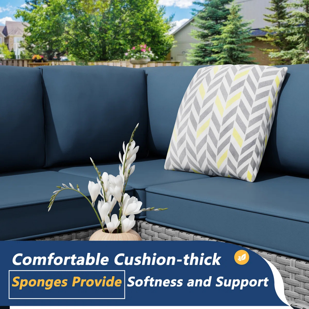 ממדים: סקשונל: 24.4'' H | שולחן: 11.8'' H x 25.6'' W x 25.6'' L | כריות: 4'' H