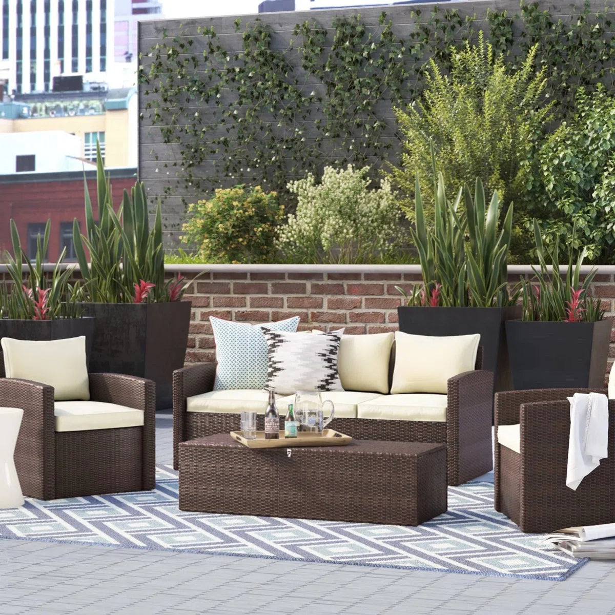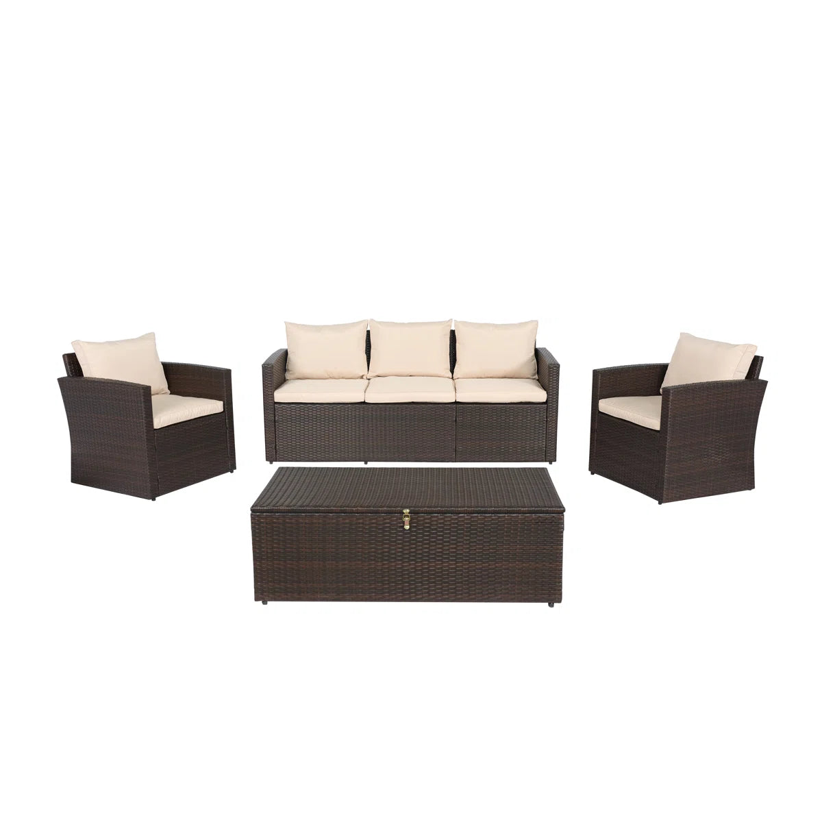 ™Lunara | סט טרקלין פטיו בן 4 חלקים – כריות עמוקות, שולחן אחסון, עיצוב עמיד למים