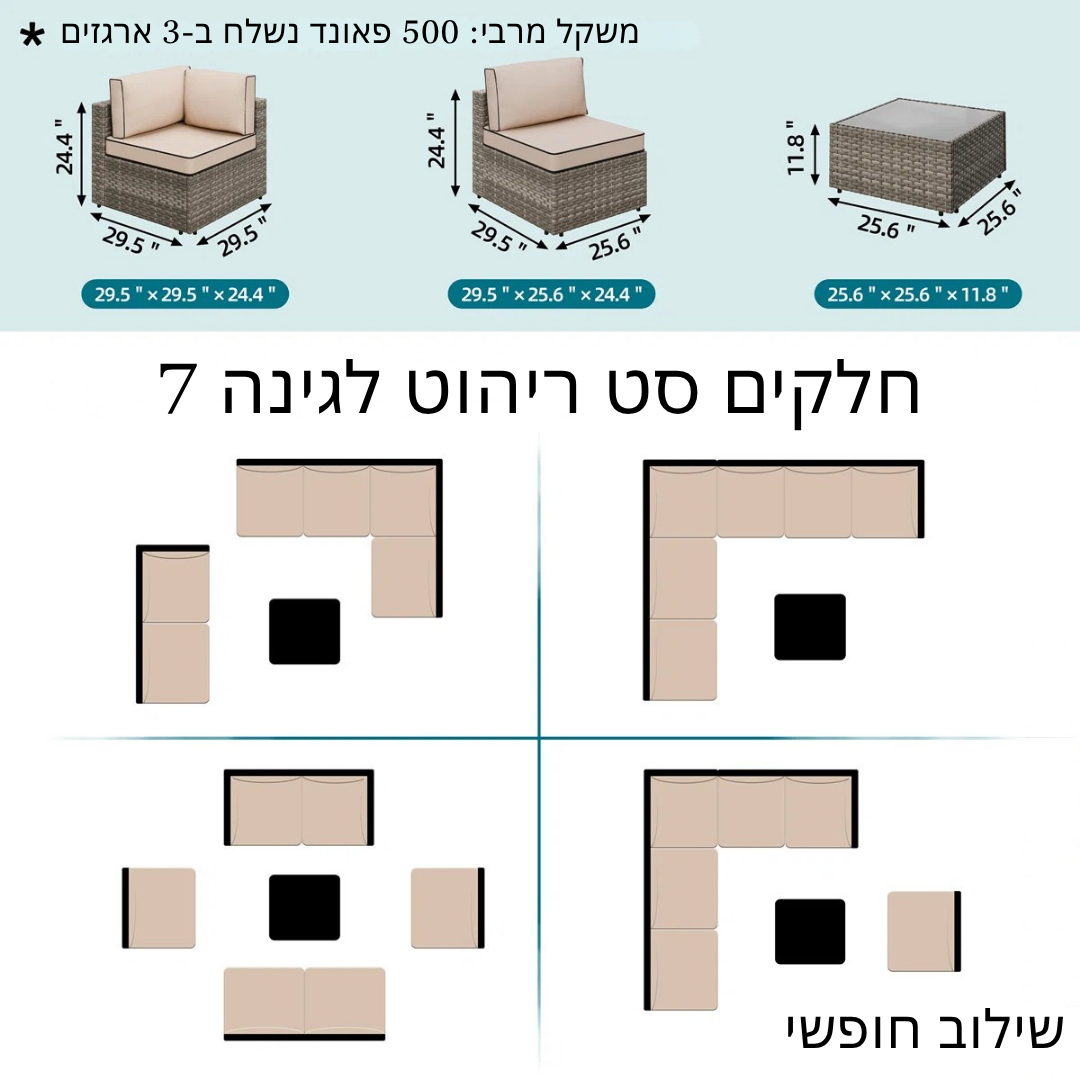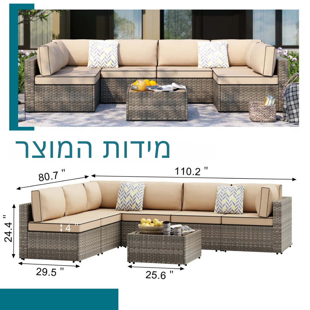 ™Senira | סט פטיו בן 7 חלקים – עיצוב מודולרי, כריות רכות, כיסויים נשלפים