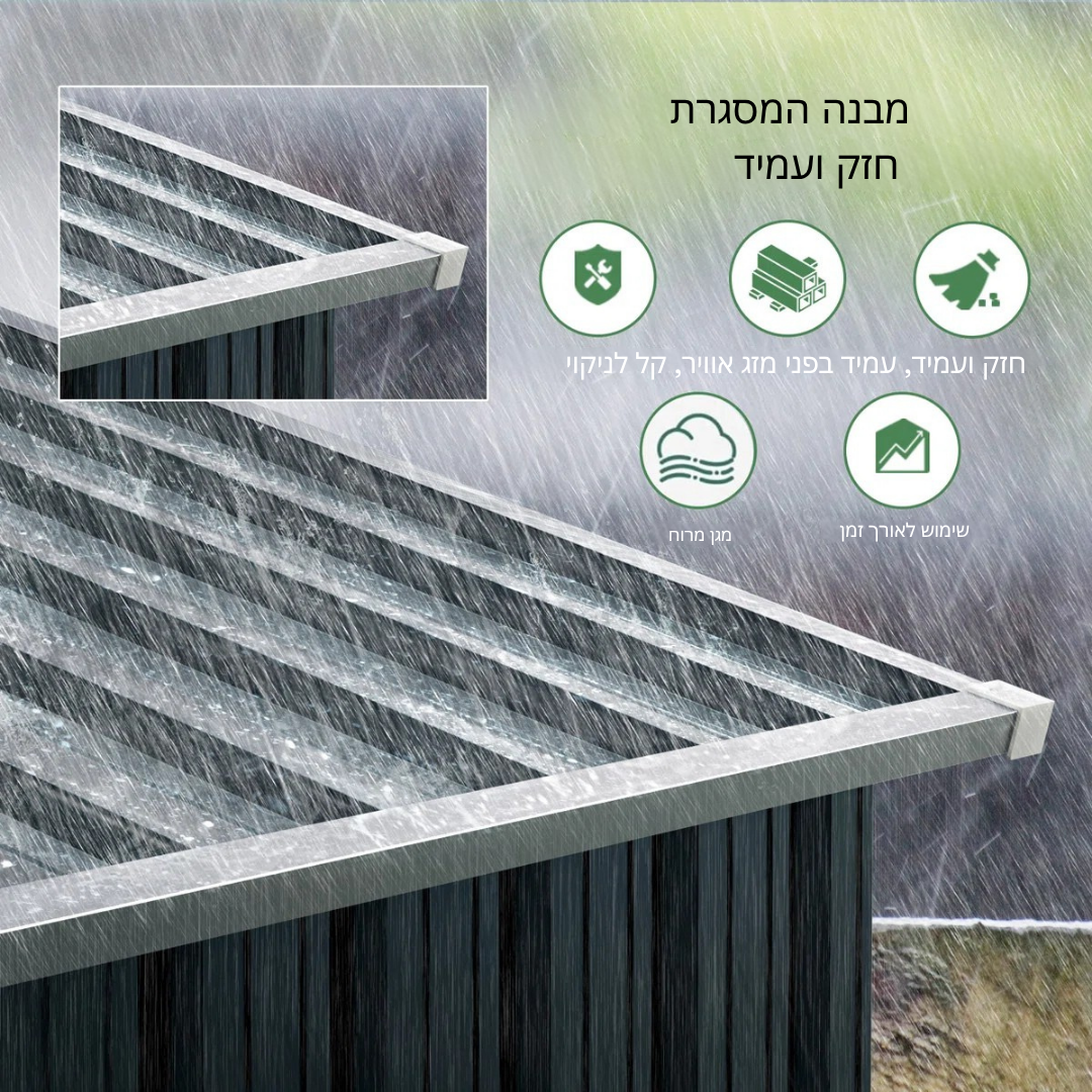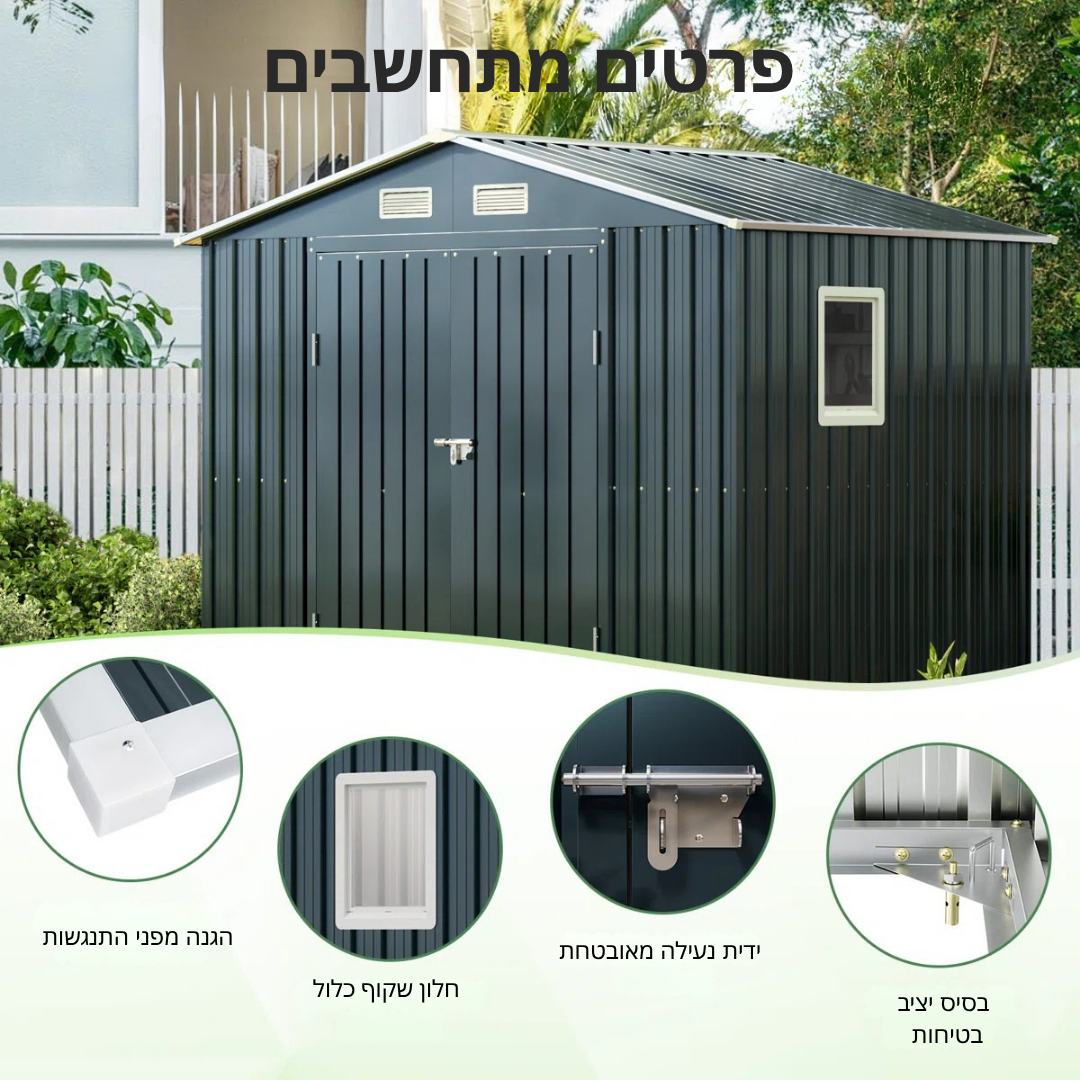 ™Taluna | מחסן מתכת בגודל 10x12 רגל עם חלונות – שלדת פלדה, גג משופע, מבנה עמיד למזג אוויר